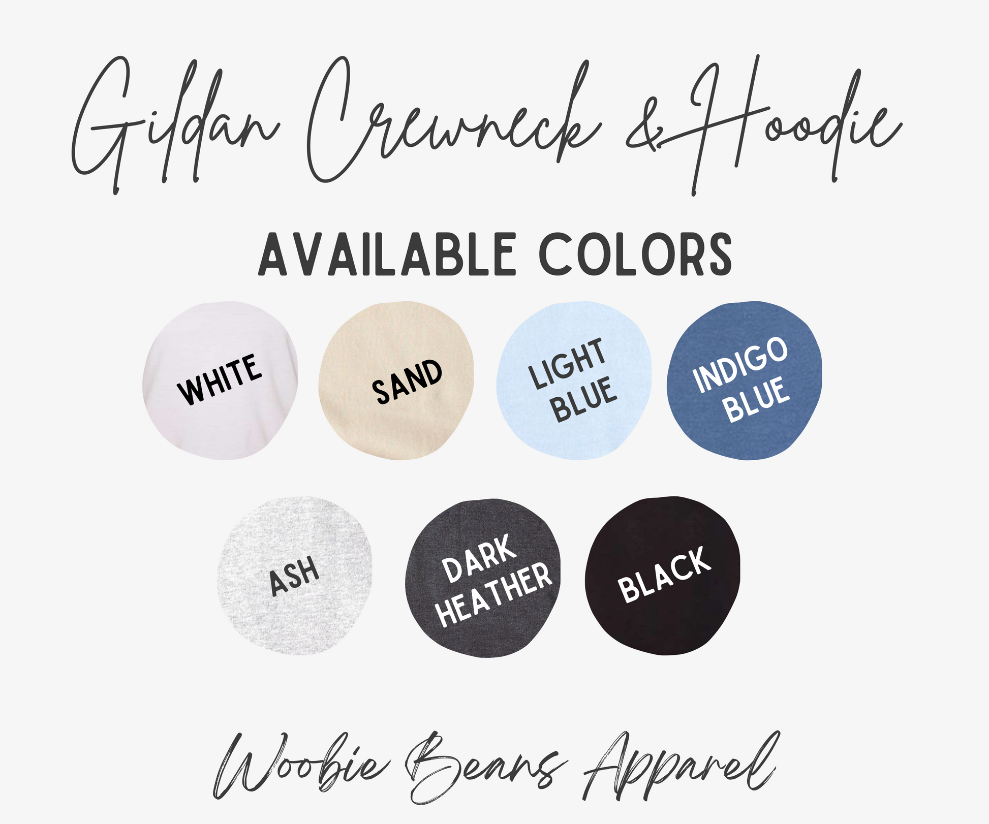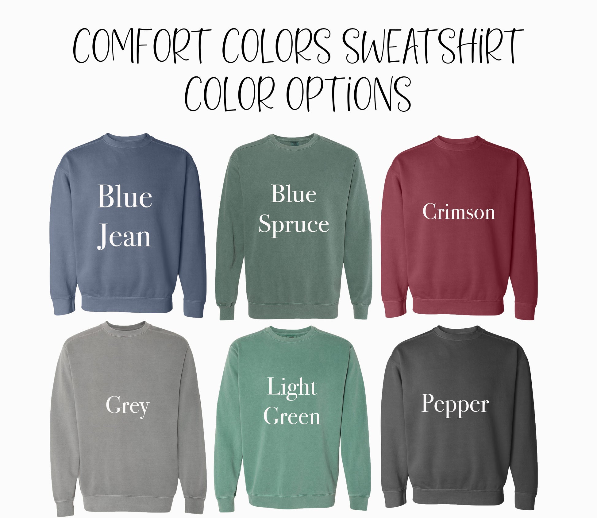 We recommend the vintage white, white or sand color options, but we can modify the colors of this design to work with other sweatshirt colors. Modifications will automatically be done to best work with the sweatshirt color selected, unless otherwise requested.