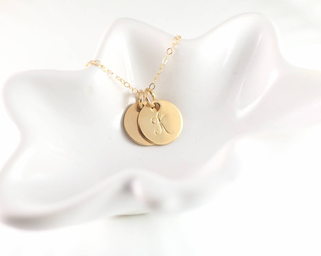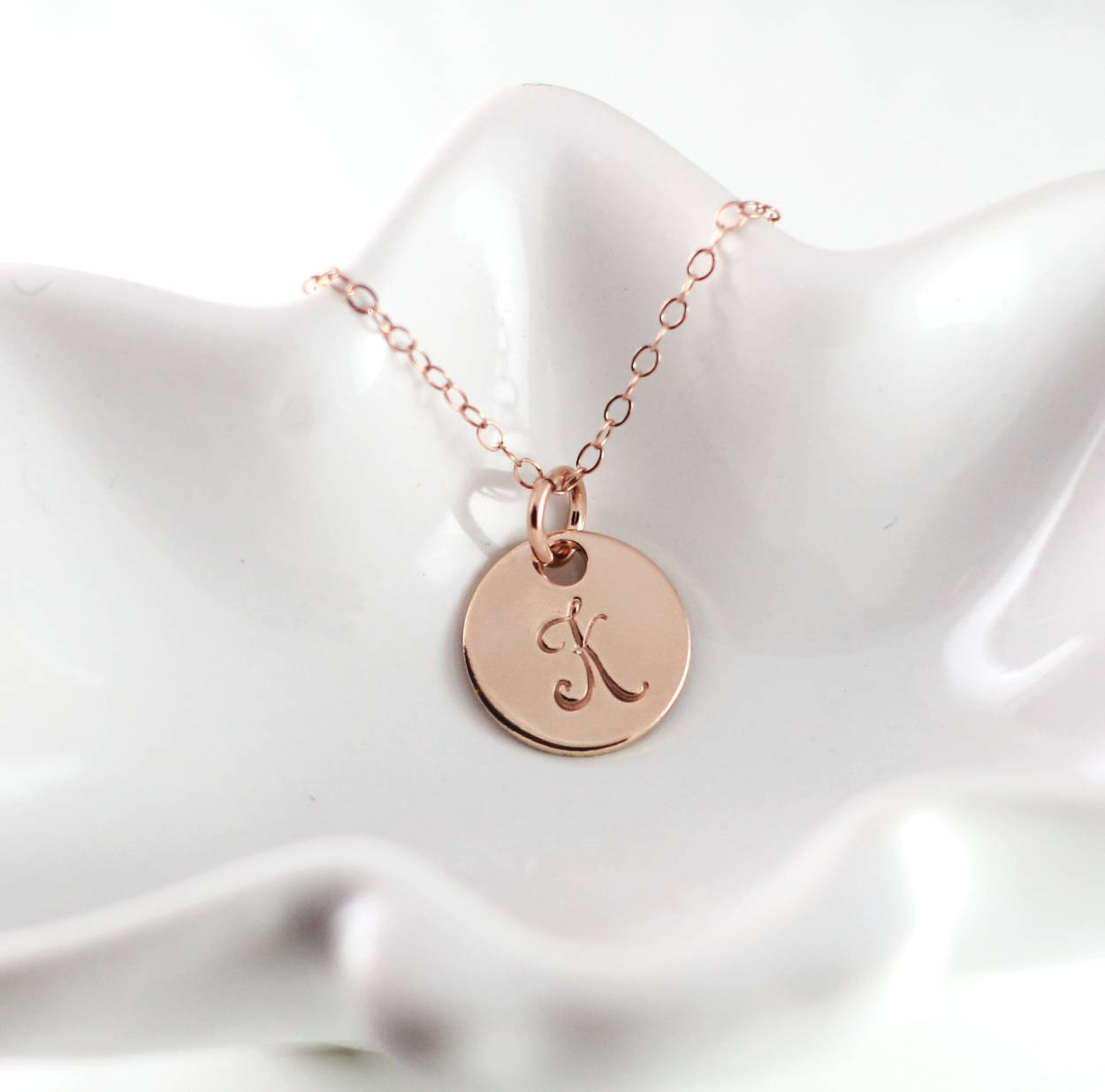 Make a statement with this trendy custom initial necklace. Choose between rose gold, silver, and yellow gold for metal disc. Makes a great gift for bridesmaids, best friends, moms, or yourself!
