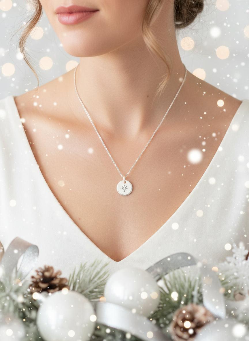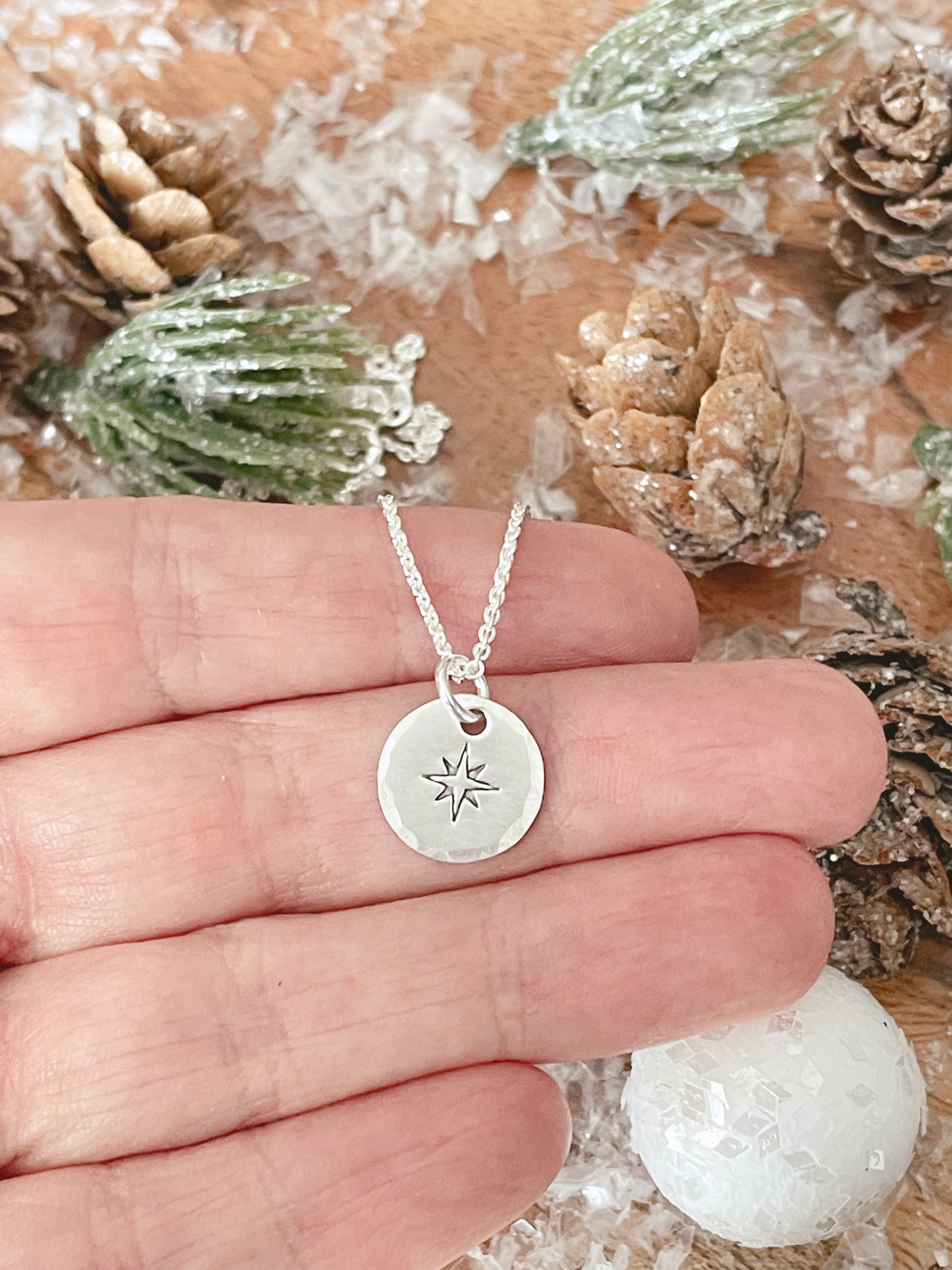 I designed this sterling silver star necklace to be reminiscent of the Moravian star that I love so dearly at Christmas time. The simple sterling silver 1/2" circle disc is hand stamped with a beautiful star. The edges are given a light hammered texture for a bit of added character, and the charm is finished with a lovely brushed matte finish. This dainty necklace is the perfect everyday piece all year long. I hope it brings warm feelings of the peace and love that the Moravian star symbolizes.